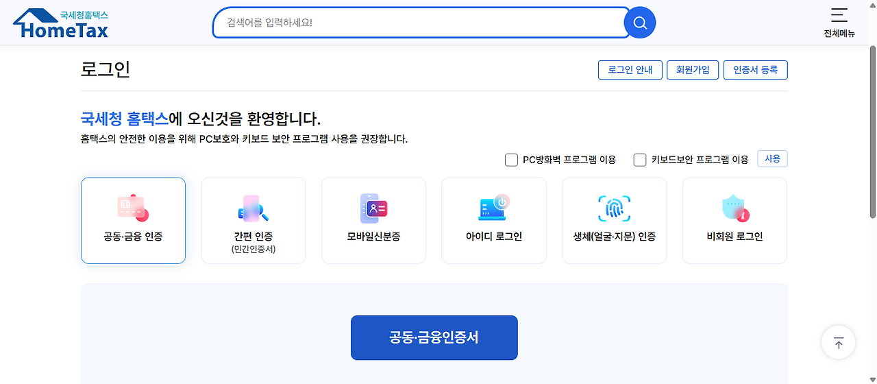 홈택스는 보안과 편의성을 위해 다양한 로그인 방식을 제공한다.